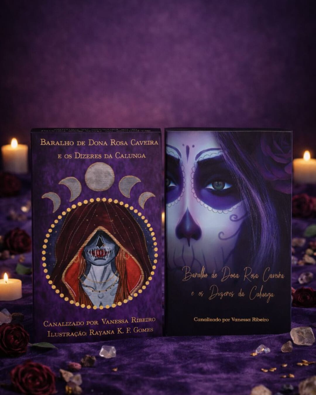 KIT baralho de Dona Rosa Caveira e os dizeres de Calunga. Um combo dos dois baralhos com a versão clássica e a nova releitura. Ambos oráculos contém 30 cartas e um livreto/e-book explicativo com o significado de cada lâmina.